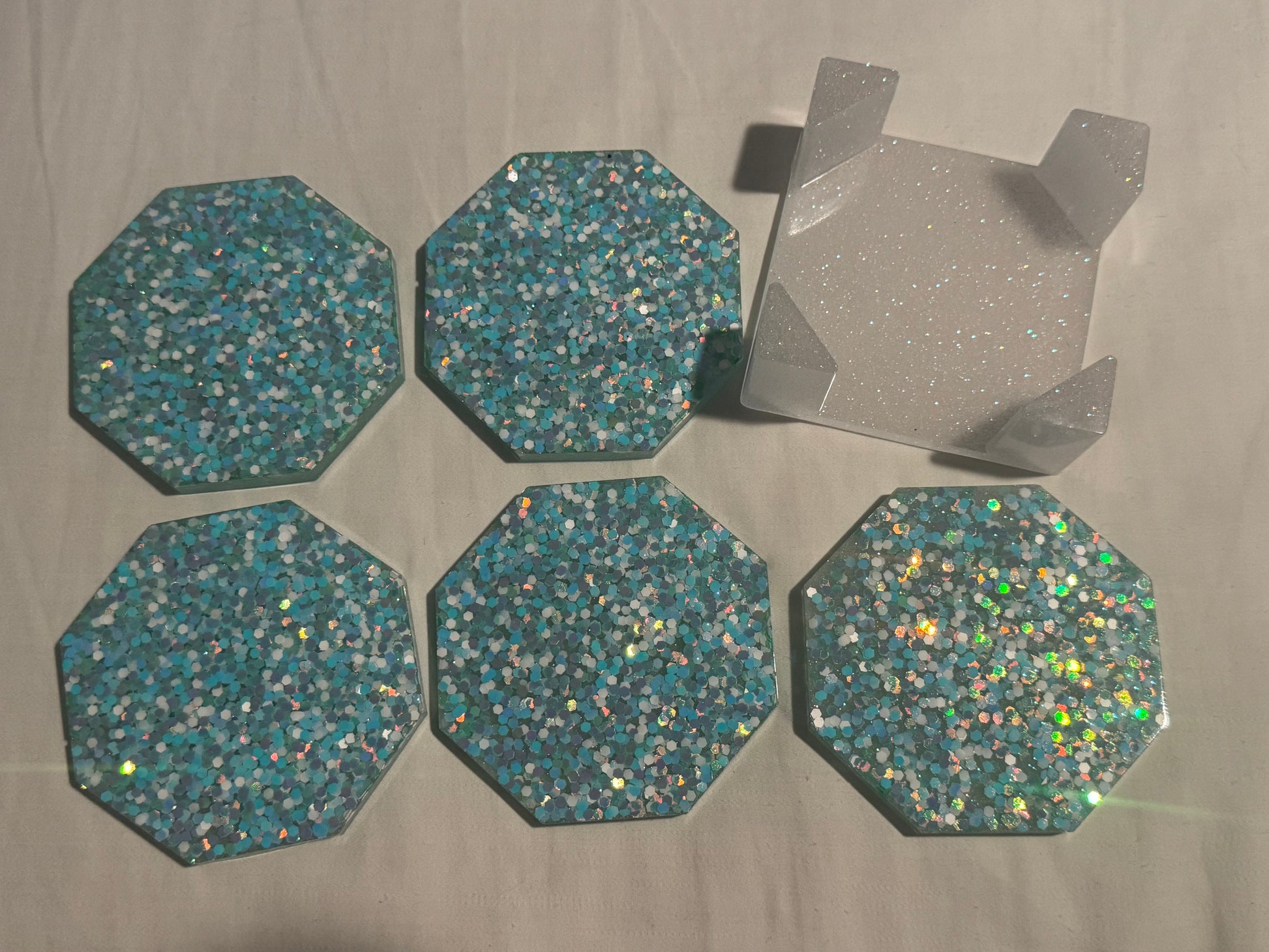 Blue and White Glitter Coaster Set