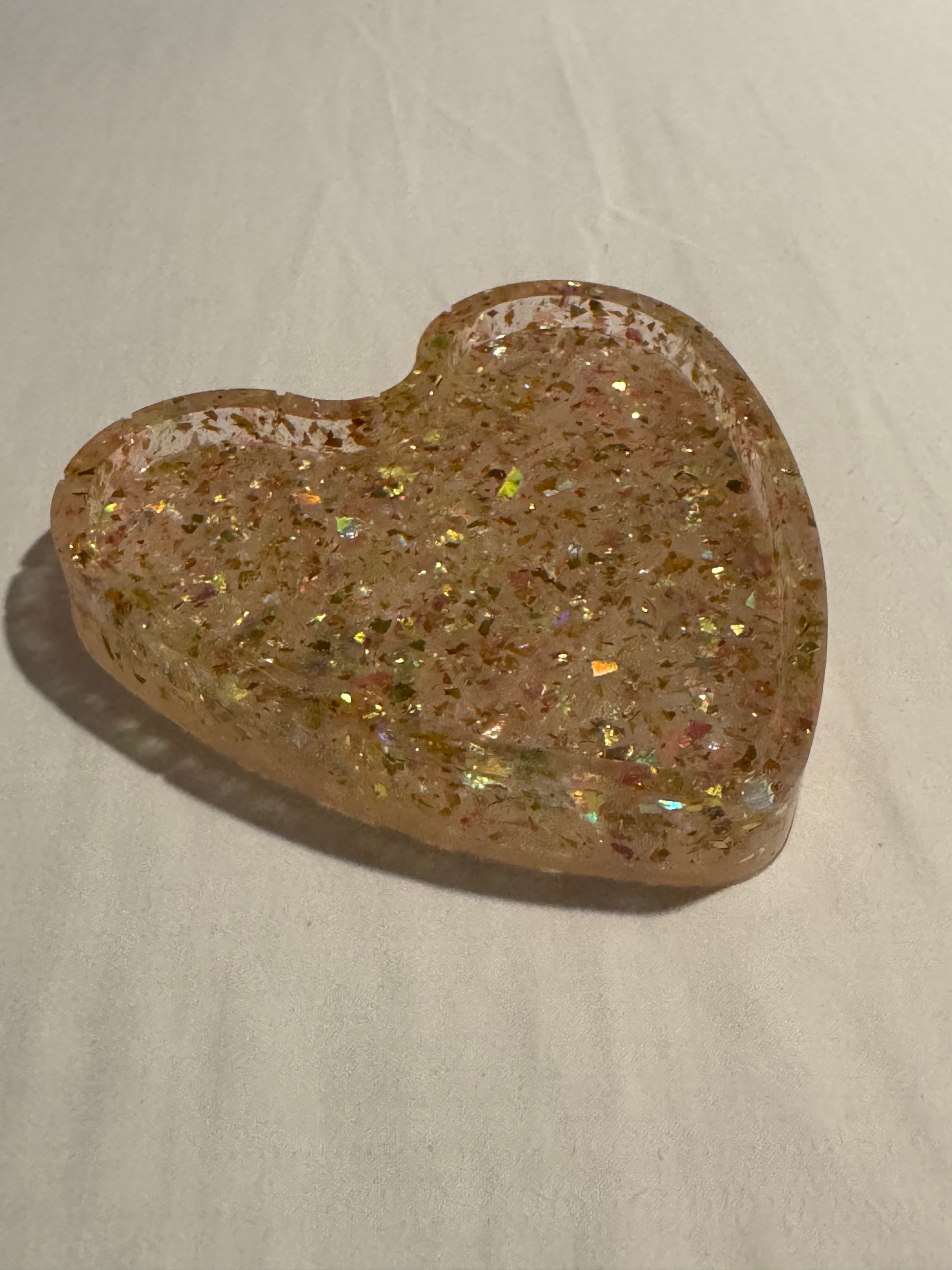 Add some sparkle to your home with our Glitter Foil Heart Tray! This fun and quirky trinket tray features a heart shape and random, playful colors. A perfect way to store your jewelry or small trinkets. (Note: May cause sudden glitter obsession!)