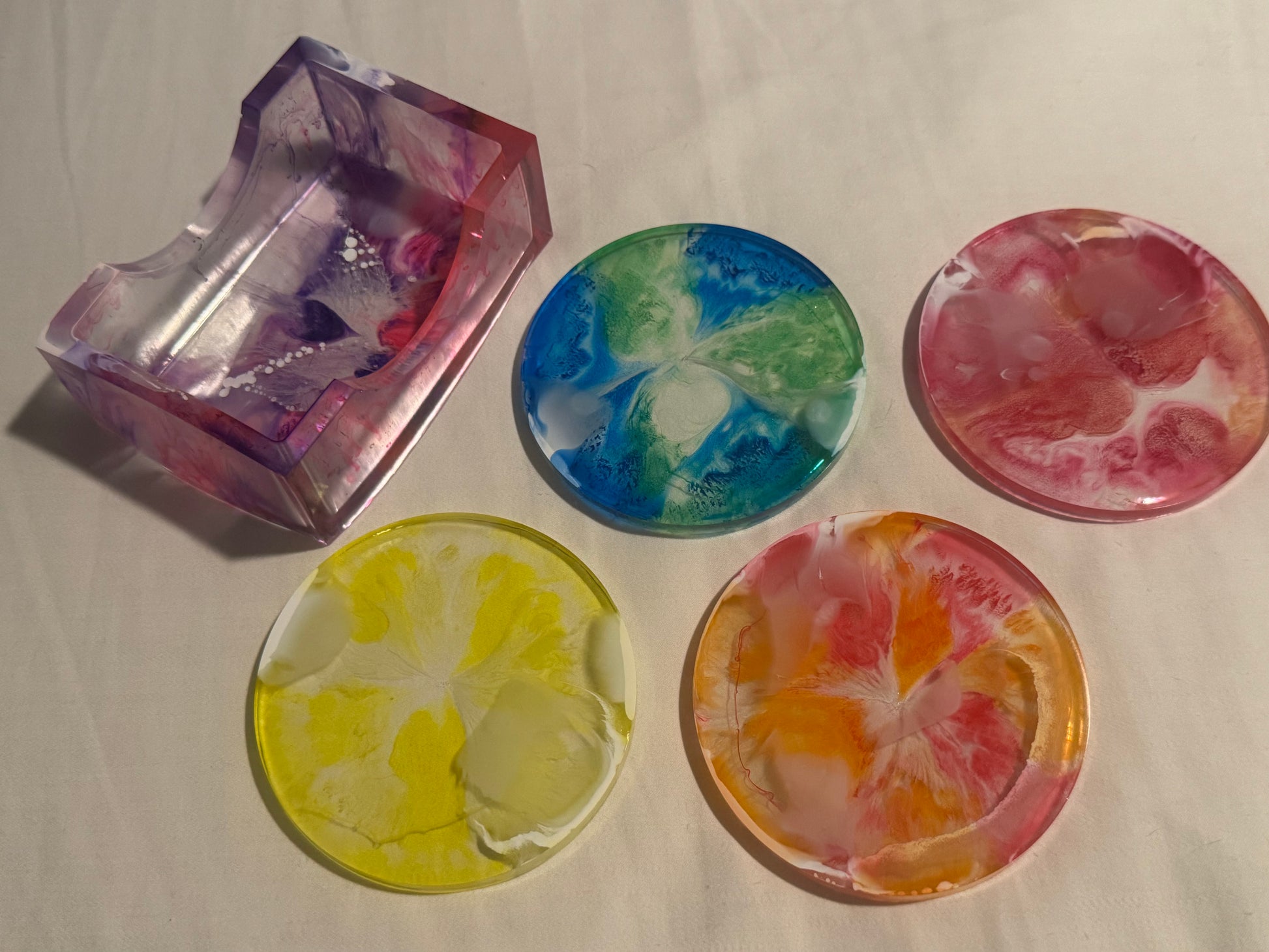 Add a splash of color to your coffee table with our Watercolor Coaster Set. These coasters, designed with vibrant watercolor patterns, come with a stylish holder to keep them organized. Protect your furniture and brighten up your space with a touch of whimsy.